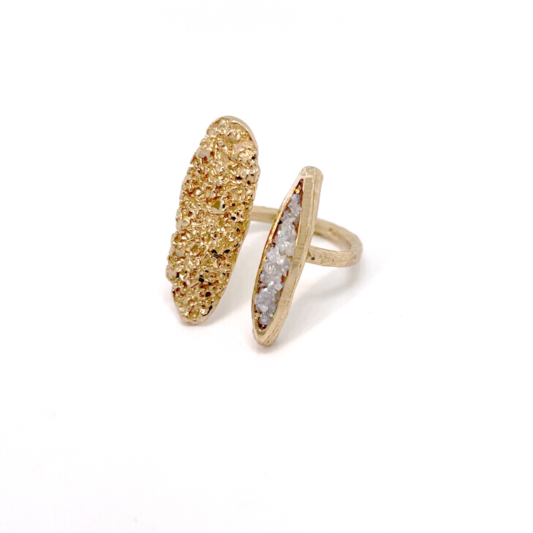 Δαχτυλίδι Sand D17 Geode από το εργαστήριο της Tina Kotsoni. Χειροποίητο δαχτυλίδι από ορείχαλκο ρυθμιζόμενου μεγέθους με χρωματιστή πατίνα και ακατέργαστους κρύσταλλους. Δουλεμένο με την τεχνική του διαμανταρίσματος που προσδίδει στο μέταλλο την απόλυτη λάμψη.