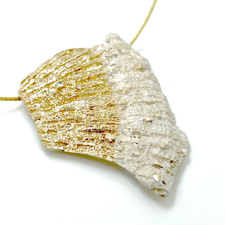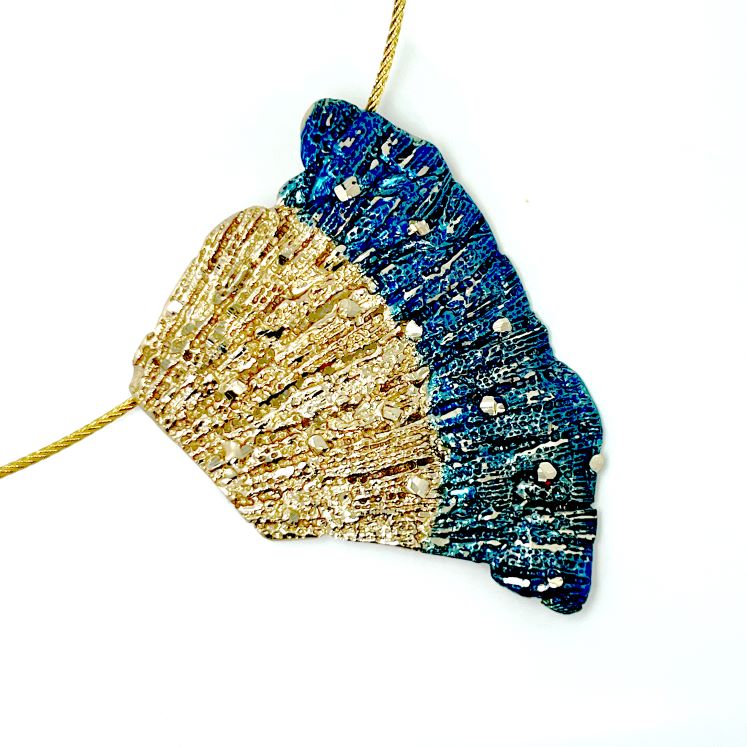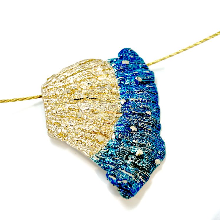 Κολιέ Underwater K01 από το εργαστήριο της Tina Kotsoni. Χειροποίητο κολιέ από ορείχαλκο με χρωματιστή πατίνα και αλυσίδα από stainlees steel. Δουλεμένο με την τεχνική του διαμανταρίσματος που προσδίδει στο μέταλλο την απόλυτη λάμψη.
