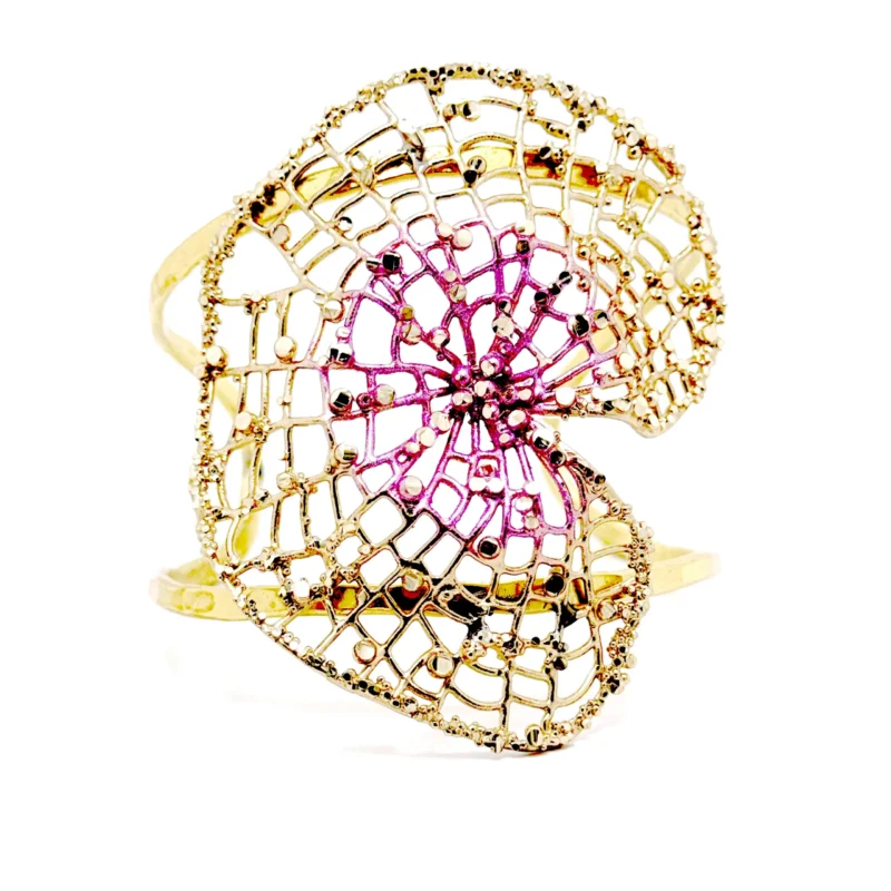 Βραχιόλι Althea B1185 από το εργαστήριο της Tina Kotsoni. Χειροποίητο βραχιόλι από ορείχαλκο με χρωματιστή πατίνα. Δουλεμένο με την τεχνική του διαμανταρίσματος που προσδίδει στο μέταλλο την απόλυτη λάμψη.