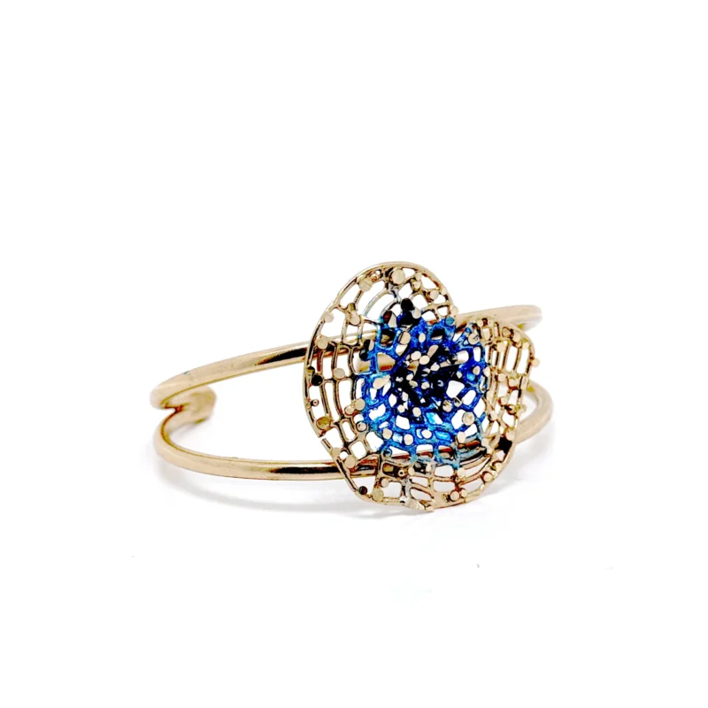 Βραχιόλι Althea B1185m από το εργαστήριο της Tina Kotsoni. Χειροποίητο βραχιόλι από ορείχαλκο με χρωματιστή πατίνα. Δουλεμένο με την τεχνική του διαμανταρίσματος που προσδίδει στο μέταλλο την απόλυτη λάμψη.