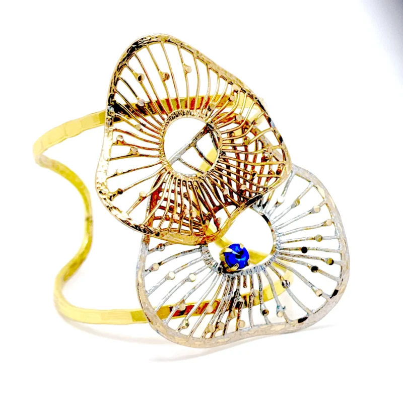 Βραχιόλι Althea B1186 Double από το εργαστήριο της Tina Kotsoni. Χειροποίητο βραχιόλι από ορείχαλκο με χρωματιστή πατίνα και κρυστάλλους. Δουλεμένο με την τεχνική του διαμανταρίσματος που προσδίδει στο μέταλλο την απόλυτη λάμψη.