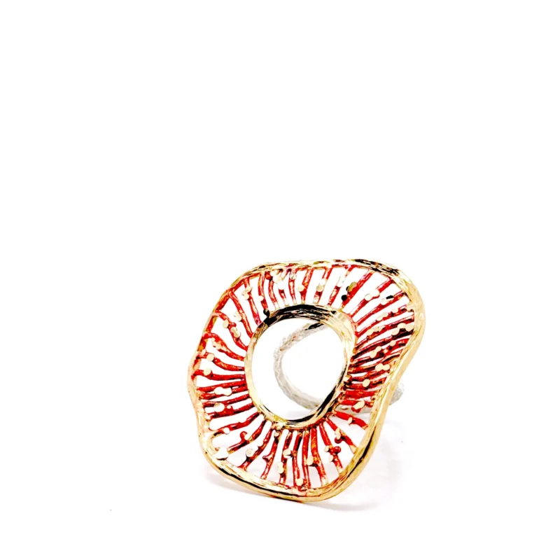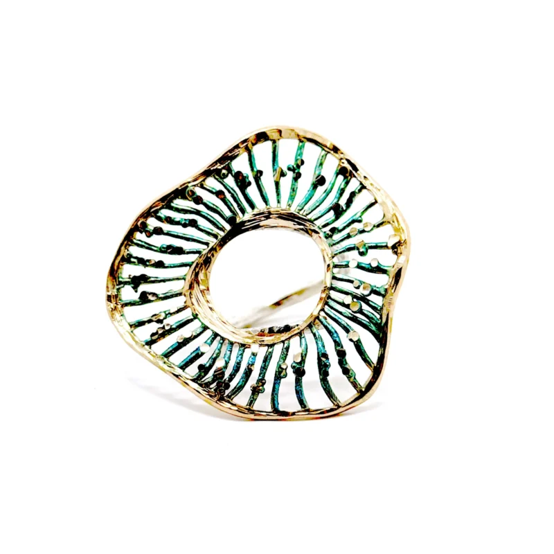 Δαχτυλίδι Althea D1201m από το εργαστήριο της Tina Kotsoni. Χειροποίητο δαχτυλίδι ρυθμιζόμενου μεγέθους από ορείχαλκο με χρωματιστή πατίνα. Δουλεμένο με την τεχνική του διαμανταρίσματος που προσδίδει στο μέταλλο την απόλυτη λάμψη.