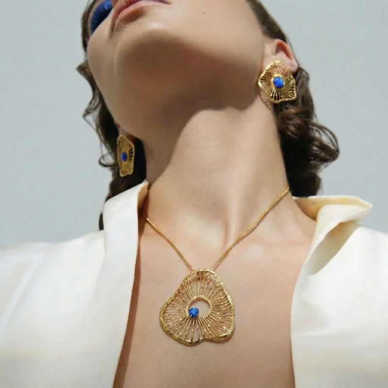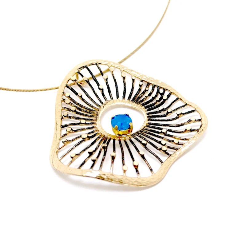 Κολιέ Althea K1186 από το εργαστήριο της Tina Kotsoni. Χειροποίητο κολιέ από ορείχαλκο με κρυστάλλους. Η αλυσίδα είναι από stainlees steel. Δουλεμένο με την τεχνική του διαμανταρίσματος που προσδίδει στο μέταλλο την απόλυτη λάμψη.