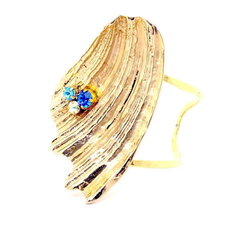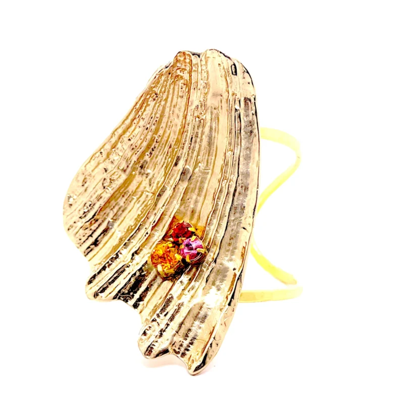 Βραχιόλι Ostrea B1190 από το εργαστήριο της Tina Kotsoni. Χειροποίητο βραχιόλι από ορείχαλκο με χρωματιστή πατίνα και κρύσταλλους. Δουλεμένο με την τεχνική του διαμανταρίσματος που προσδίδει στο μέταλλο την απόλυτη λάμψη.