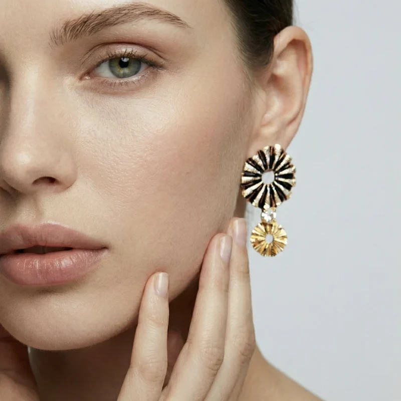 Σκουλαρίκια Ostrea S1182 Double από το εργαστήριο της Tina Kotsoni. Χειροποίητα σκουλαρίκια από ορείχαλκο με χρωματιστή πατίνα, κρύσταλλους και ασημένιο καρφάκι 925. Δουλεμένα με την τεχνική του διαμανταρίσματος που προσδίδει στο μέταλλο την απόλυτη λάμψη.