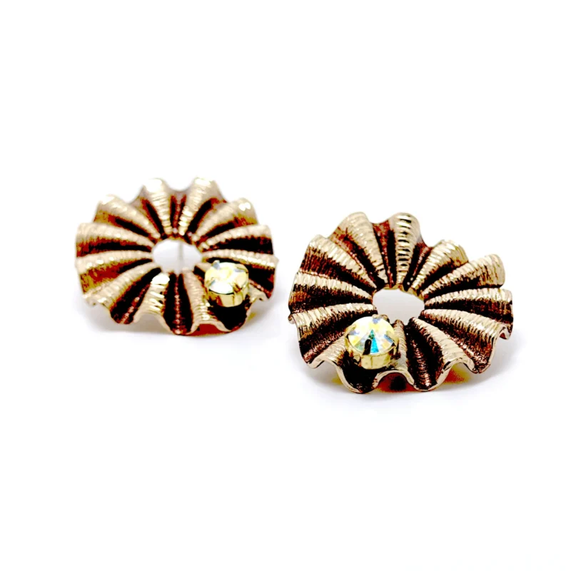 Σκουλαρίκια Ostrea S1182m από το εργαστήριο της Tina Kotsoni. Χειροποίητα σκουλαρίκια από ορείχαλκο με χρωματιστή πατίνα κρύσταλλους και ασημένιο καρφάκι 925. Δουλεμένα με την τεχνική του διαμανταρίσματος που προσδίδει στο μέταλλο την απόλυτη λάμψη.