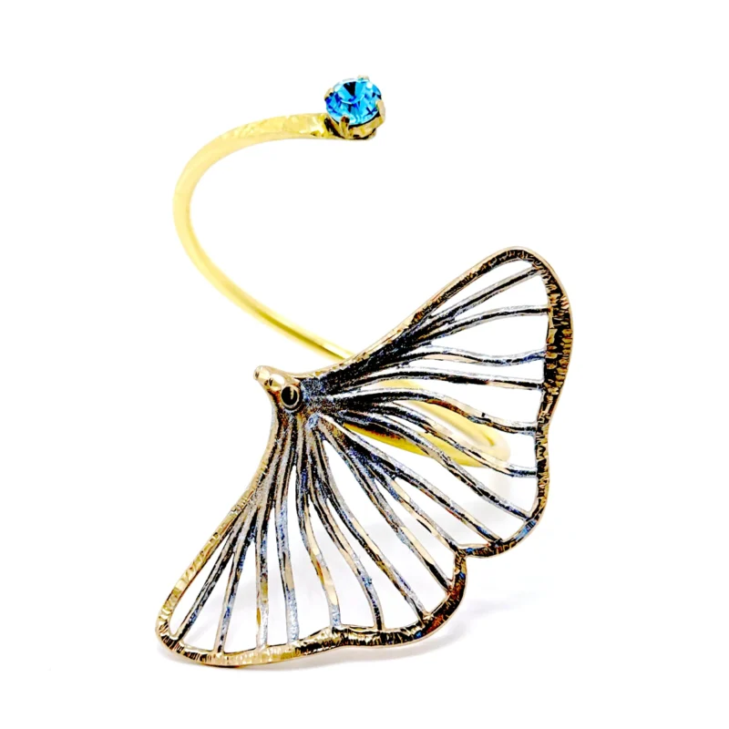 Βραχιόλι The Ginkgo Series Β1196 από την Tina Kotsoni. Χειροποίητο βραχιόλι από ορείχαλκο με χρωματιστή πατίνα και κρύσταλλους. Δουλεμένο με την τεχνική του διαμανταρίσματος που προσδίδει στο μέταλλο την απόλυτη λάμψη.