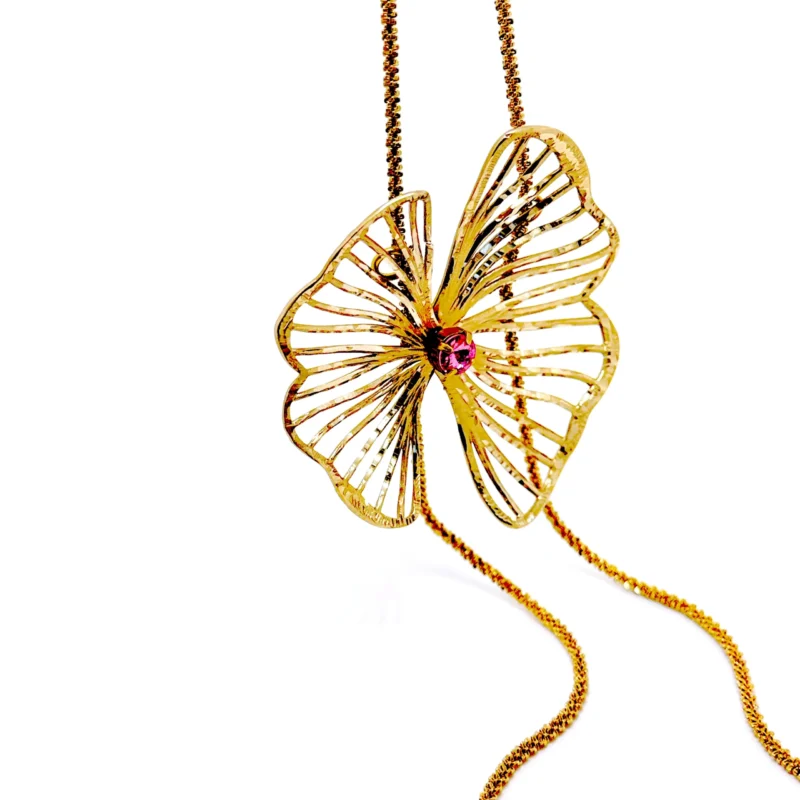 Κολιέ The Ginkgo Series K1196 Double από το εργαστήριο της Tina Kotsoni. Χειροποίητο κολιέ από ορείχαλκο με χρωματιστή πατίνα και κρύσταλλους. Η αλυσίδα είναι από stainlees steel. Δουλεμένο με την τεχνική του διαμανταρίσματος που προσδίδει στο μέταλλο την απόλυτη λάμψη.
