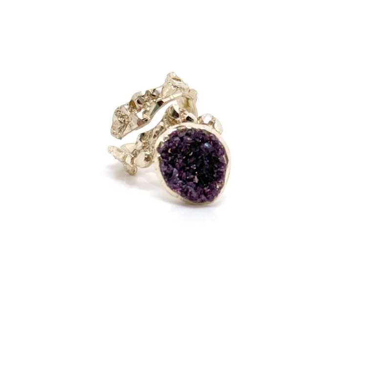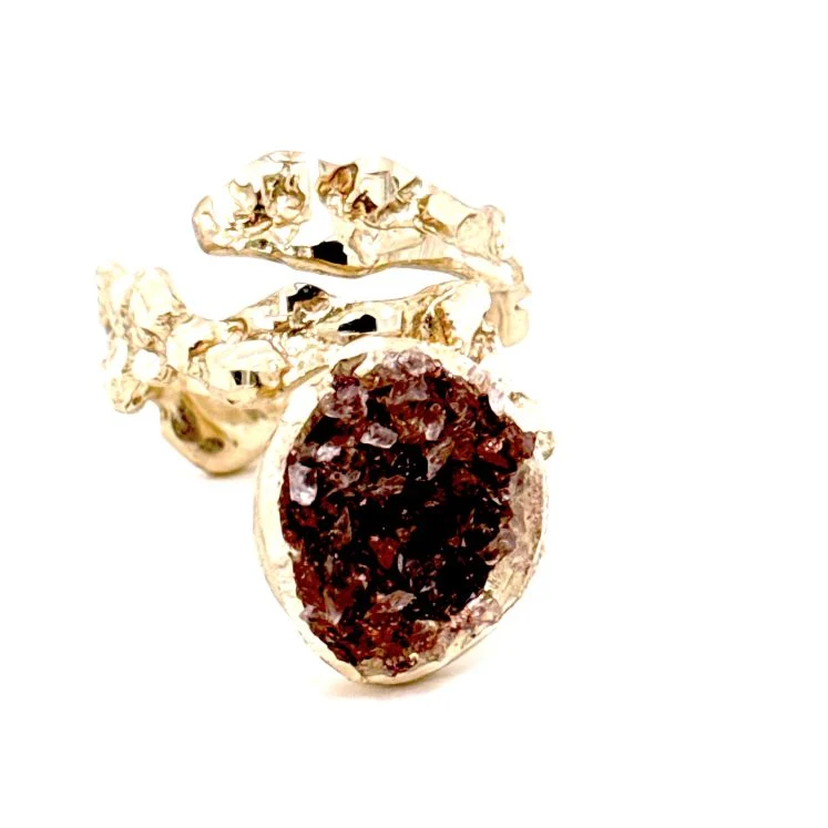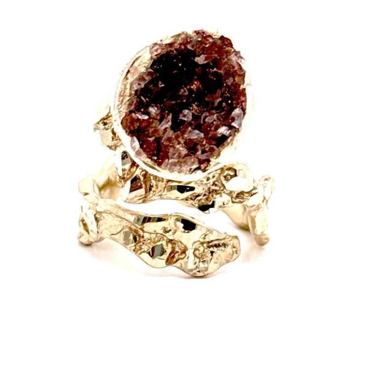 Δαχτυλίδι Modern Menagerie D1175 Geode από το εργαστήρι Tina Kotsoni. Χειροποίητο δαχτυλίδι από ορείχαλκο ρυθμιζόμενου μεγέθους με χρωματιστή πατίνα και ακατέργαστους κρυστάλλους. Δουλεμένο με την τεχνική του διαμανταρίσματος που προσδίδει στο μέταλλο την απόλυτη λάμψη.