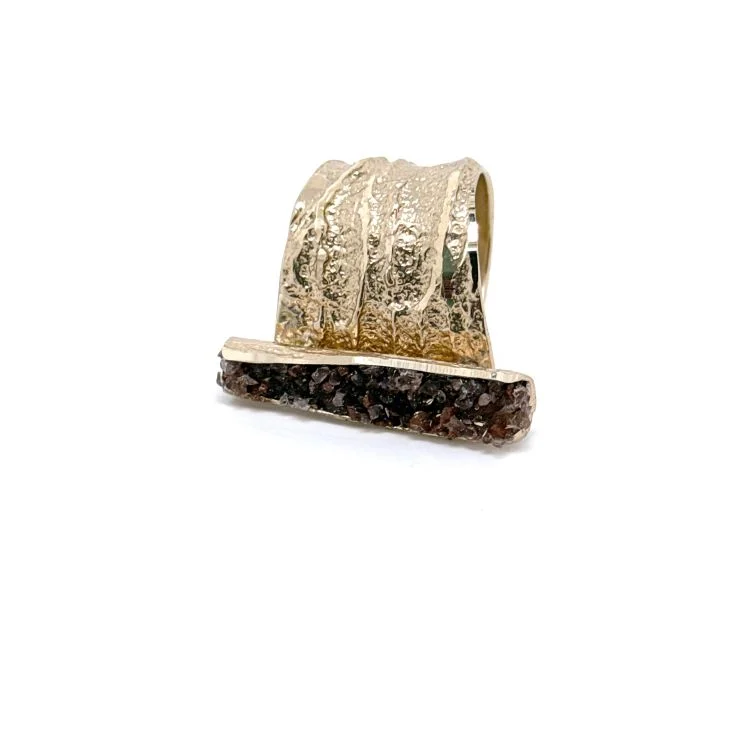 Δαχτυλίδι Primal Geometry D1008L από το εργαστήριο της Tina Kotsoni. Χειροποίητο δαχτυλίδι από ορείχαλκο ρυθμιζόμενου μεγέθους με χρωματιστή πατίνα και ακατέργαστους κρύσταλλους. Δουλεμένο με την τεχνική του διαμανταρίσματος που προσδίδει στο μέταλλο την απόλυτη λάμψη.