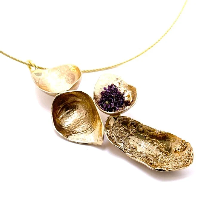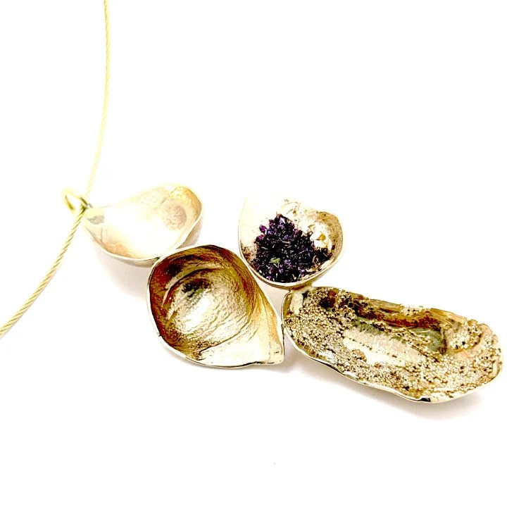 Κολιέ Primal Geometry K1153Large από το εργαστήριο της Tina Kotsoni. Χειροποίητο κολιέ από ορείχαλκο με χρωματιστή πατίνα, ακατέργαστους κρύσταλλους και αλυσίδα από stainlees steel. Δουλεμένο με την τεχνική του διαμανταρίσματος που προσδίδει στο μέταλλο την απόλυτη λάμψη.