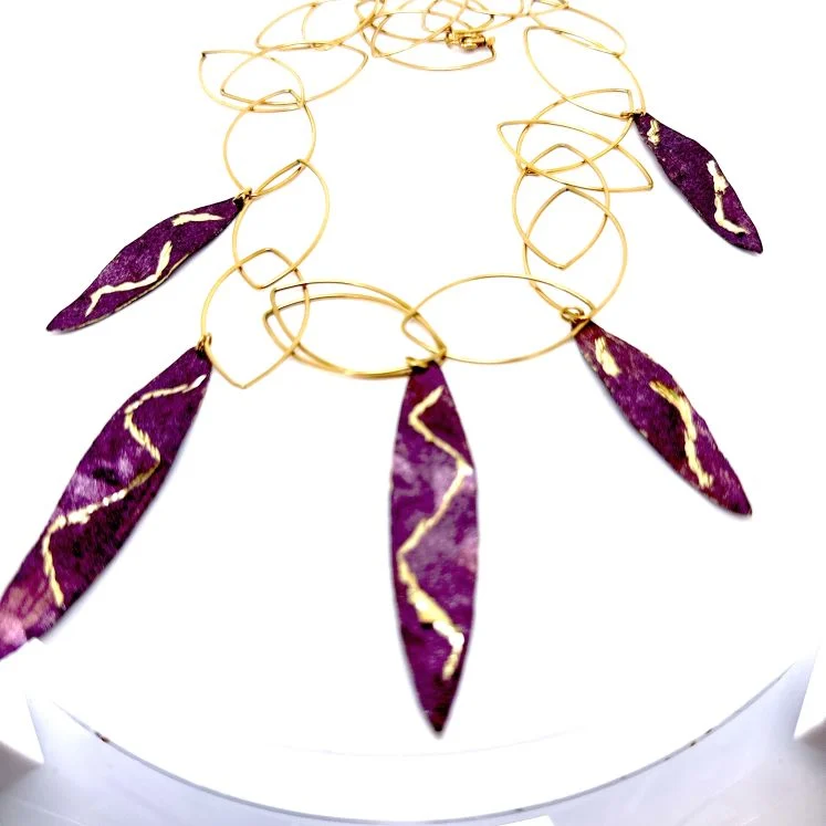 Κολιέ Primal Geometry K1180 από το εργαστήριο της Tina Kotsoni. Χειροποίητο κολιέ από ορείχαλκο με χρωματιστή πατίνα. Δουλεμένο με την τεχνική του διαμανταρίσματος που προσδίδει στο μέταλλο την απόλυτη λάμψη.
