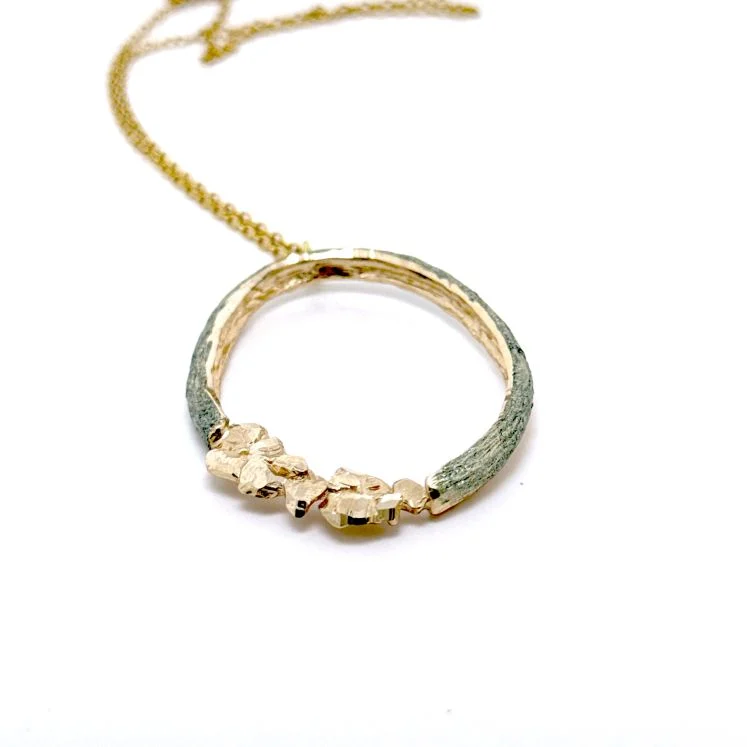 Κολιέ Primal Geometry K45 από το εργαστήριο της Tina Kotsoni. Χειροποίητο κολιέ από ορείχαλκο με χρωματιστή πατίνα και αλυσίδα από stainlees steel. Δουλεμένο με την τεχνική του διαμανταρίσματος που προσδίδει στο μέταλλο την απόλυτη λάμψη.