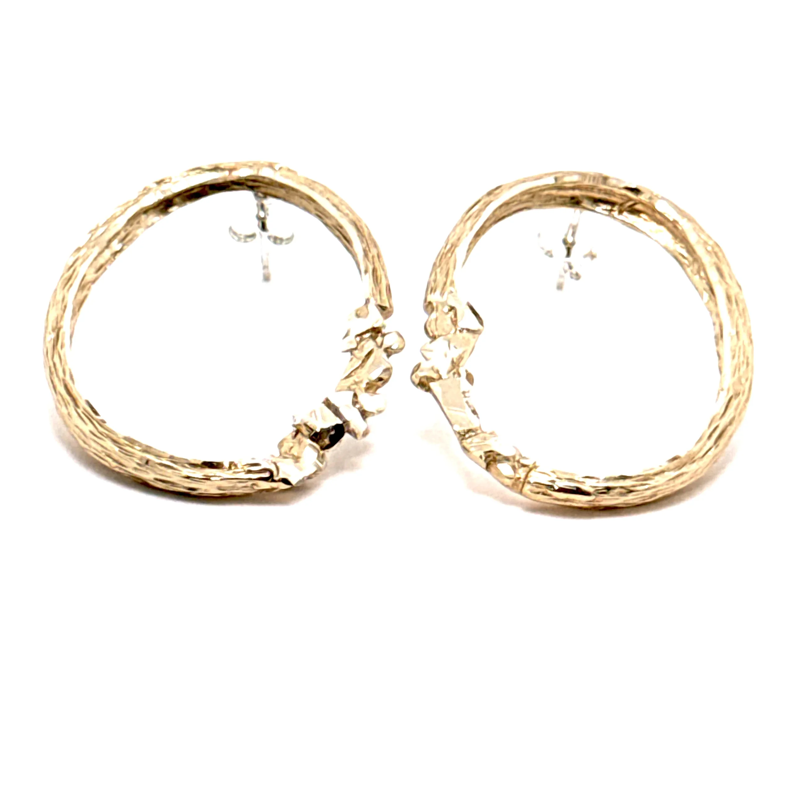 Σκουλαρίκια Primal Geometry S45k από το εργαστήριο της Tina Kotsoni. Χειροποίητα σκουλαρίκια από ορείχαλκο με χρωματιστή πατίνα και ασημένιο καρφάκι 925. Δουλεμένα με την τεχνική του διαμανταρίσματος που προσδίδει στο μέταλλο την απόλυτη λάμψη.