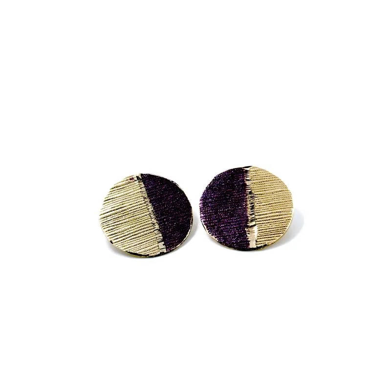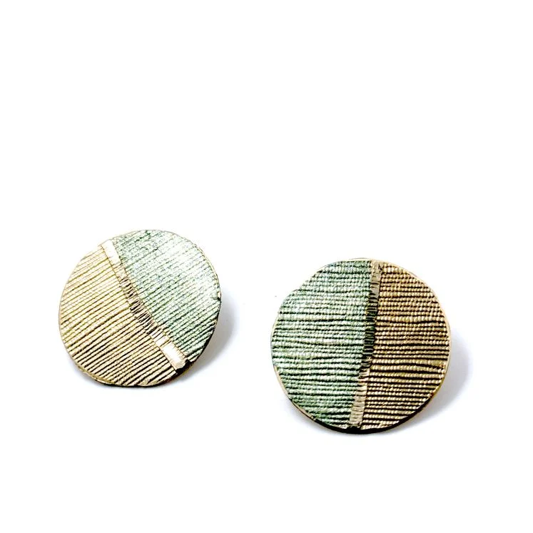 Σκουλαρίκια Primal Geometry S93small από το εργαστήριο της Tina Kotsoni. Χειροποίητα σκουλαρίκια από ορείχαλκο με ασημένιο καρφάκι 925 και χρωματιστή πατίνα. Δουλεμένα με την τεχνική του διαμανταρίσματος που προσδίδει στο μέταλλο την απόλυτη λάμψη.