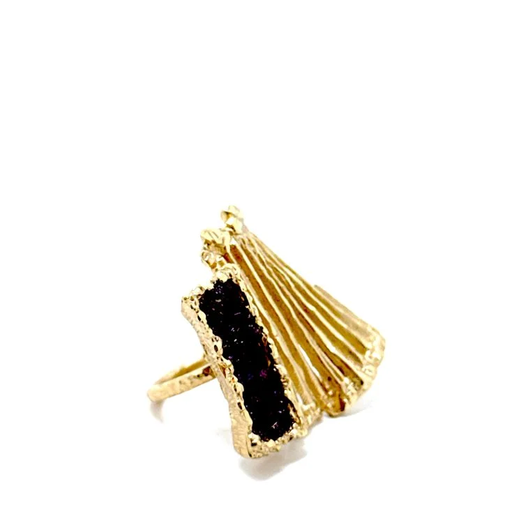 Δαχτυλίδι Dark Romance D1143 από το εργαστήριο της Tina Kotsoni. Χειροποίητο δαχτυλίδι από ορείχαλκο με χρωματιστή πατίνα, κρυστάλλους και ρυθμιζόμενου μεγέθους με ασημένια γάμπα 925. Δουλεμένο με την τεχνική του διαμανταρίσματος που προσδίδει στο μέταλλο την απόλυτη λάμψη.