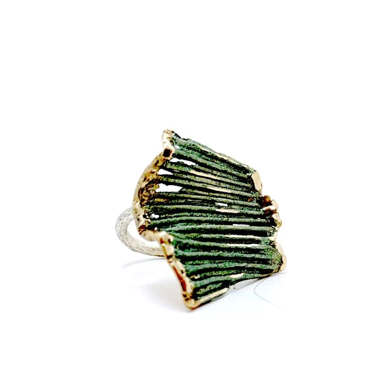 Δαχτυλίδι Dark Romance D1146 από το εργαστήριο της Tina Kotsoni. Χειροποίητο δαχτυλίδι από ορείχαλκο ρυθμιζόμενου μεγέθους, με χρωματιστή πατίνα και γάμπα από ασήμι 925. Δουλεμένο με την τεχνική του διαμανταρίσματος που προσδίδει στο μέταλλο την απόλυτη λάμψη.