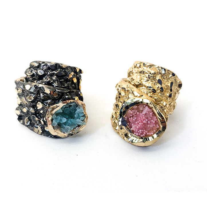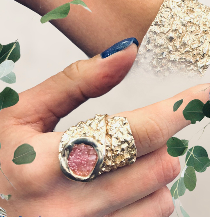 Δαχτυλίδι Sand D1010L από το εργαστήριο της Tina Kotsoni. Χειροποίητο δαχτυλίδι από ορείχαλκο ρυθμιζόμενου μεγέθους με χρωματιστή πατίνα και ακατέργαστους κρύσταλλους. Δουλεμένο με την τεχνική του διαμανταρίσματος που προσδίδει στο μέταλλο την απόλυτη λάμψη.