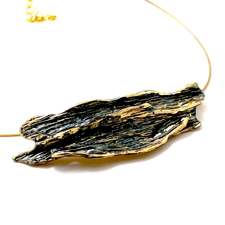 Κολιέ Aegean Wave K1091 sk Large από το εργαστήριο της Tina Kotsoni. Χειροποίητο κολιέ από ορείχαλκο με χρωματιστή πατίνα και αλυσίδα από stainlees steel. Δουλεμένο με την τεχνική του διαμανταρίσματος που προσδίδει στο μέταλλο την απόλυτη λάμψη.