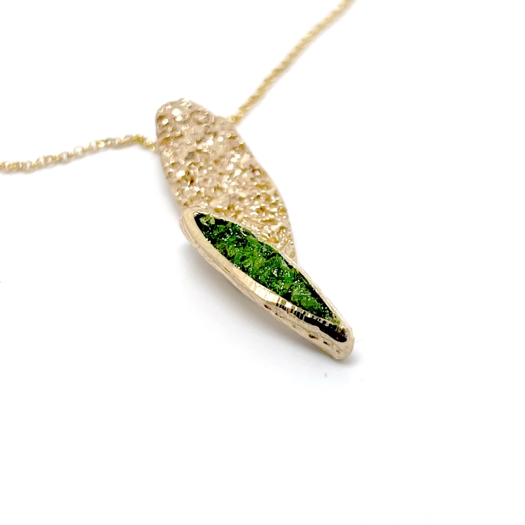 Κολιέ Sand K17 Geode από το εργαστήριο της Tina Kotsoni. Χειροποίητο κολιέ από ορείχαλκο με χρωματιστή πατίνα, ακατέργαστους κρυστάλλους και αλυσίδα από stainlees steel. Δουλεμένο με την τεχνική του διαμανταρίσματος που προσδίδει στο μέταλλο την απόλυτη λάμψη.
