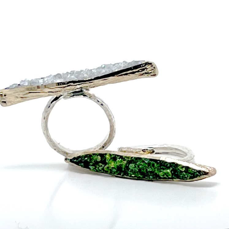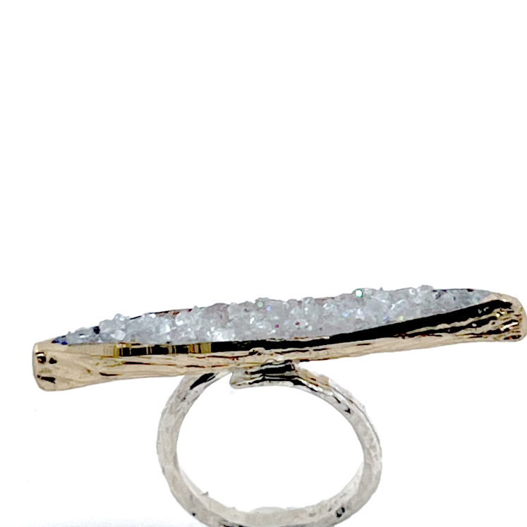 Δαχτυλίδι Desert D1050 Small από το εργαστήριο της Tina Kotsoni. Χειροποίητο δαχτυλίδι από ορείχαλκο ρυθμιζόμενου μεγέθους με ακατέργαστους κρύσταλλους και γάμπα από ασήμι 925. Δουλεμένο με την τεχνική του διαμανταρίσματος που προσδίδει στο μέταλλο την απόλυτη λάμψη.
