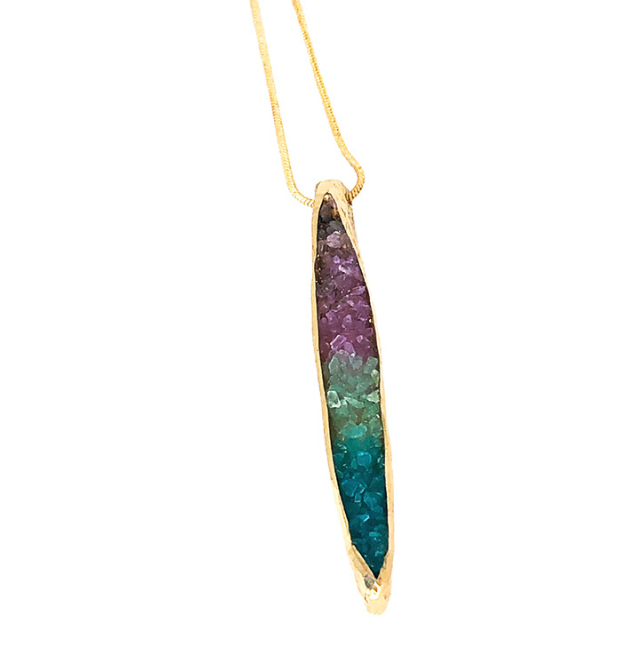 Κολιέ Desert K1027S από το εργαστήριο της Tina Kotsoni. Χειροποίητο κολιέ από ορείχαλκο με ακατέργαστους κρύσταλλους και αλυσίδα από stainlees steel. Δουλεμένο με την τεχνική του διαμανταρίσματος που προσδίδει στο μέταλλο την απόλυτη λάμψη.