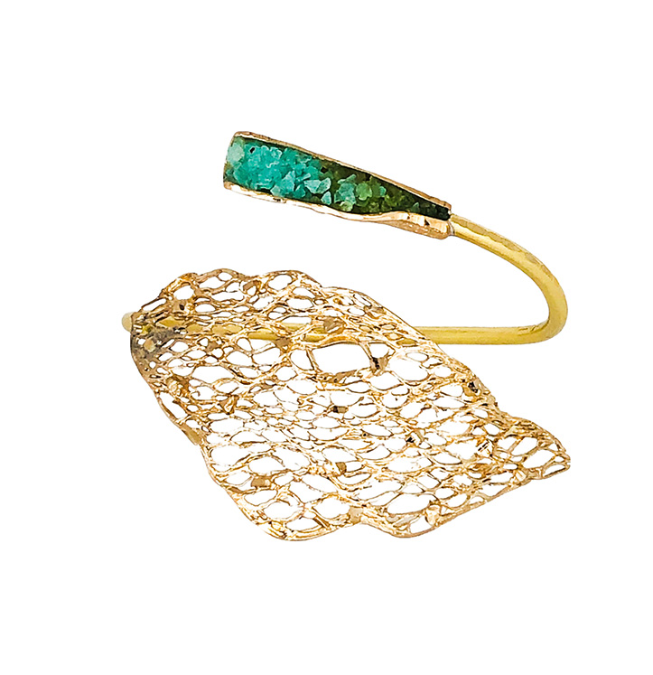 Βραχιόλι Fishnet B1041 από το εργαστήριο της Tina Kotsoni. Χειροποίητο βραχιόλι από ορείχαλκο με χρωματιστή πατίνα και ακατέργαστους κρύσταλλους. Δουλεμένο με την τεχνική του διαμανταρίσματος που προσδίδει στο μέταλλο την απόλυτη λάμψη.