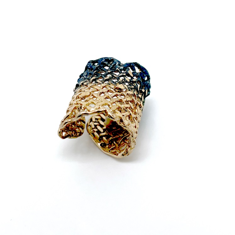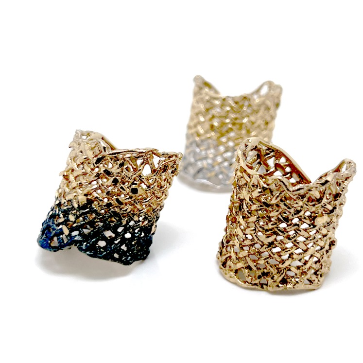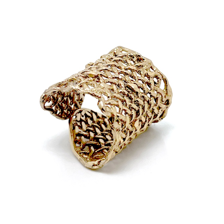 Δαχτυλίδι Fishnet D23 από το εργαστήριο της Tina Kotsoni. Χειροποίητο δαχτυλίδι από ορείχαλκο ρυθμιζόμενου μεγέθους με χρωματιστή πατίνα και δουλεμένο με την τεχνική του διαμανταρίσματος που προσδίδει στο μέταλλο την απόλυτη λάμψη.