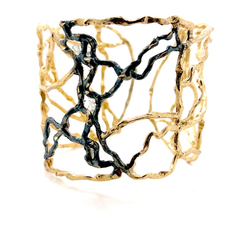 Βραχιόλι Frontiers B1070 από το εργαστήρι Tina Kotsoni. Χειροποίητο βραχιόλι από ορείχαλκο με χρωματιστή πατίνα και δουλεμένο με την τεχνική του διαμανταρίσματος που προσδίδει στο μέταλλο την απόλυτη λάμψη.