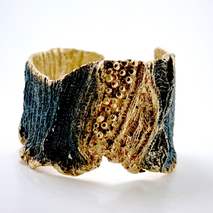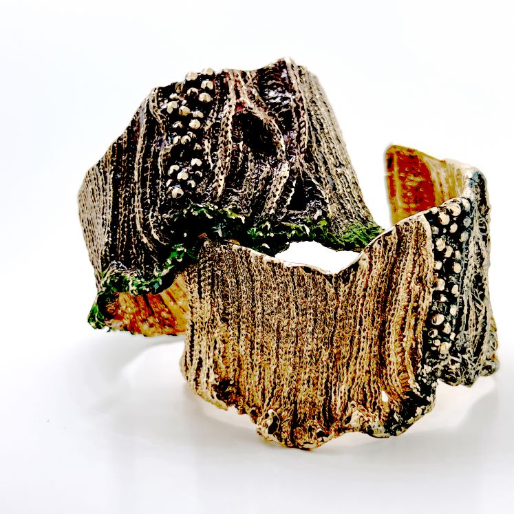 Βραχιόλι Frontiers B1104 από το εργαστήριο της Tina Kotsoni. Χειροποίητο βραχιόλι από ορείχαλκο με χρωματιστή πατίνα και δουλεμένο με την τεχνική του διαμανταρίσματος που προσδίδει στο μέταλλο την απόλυτη λάμψη.