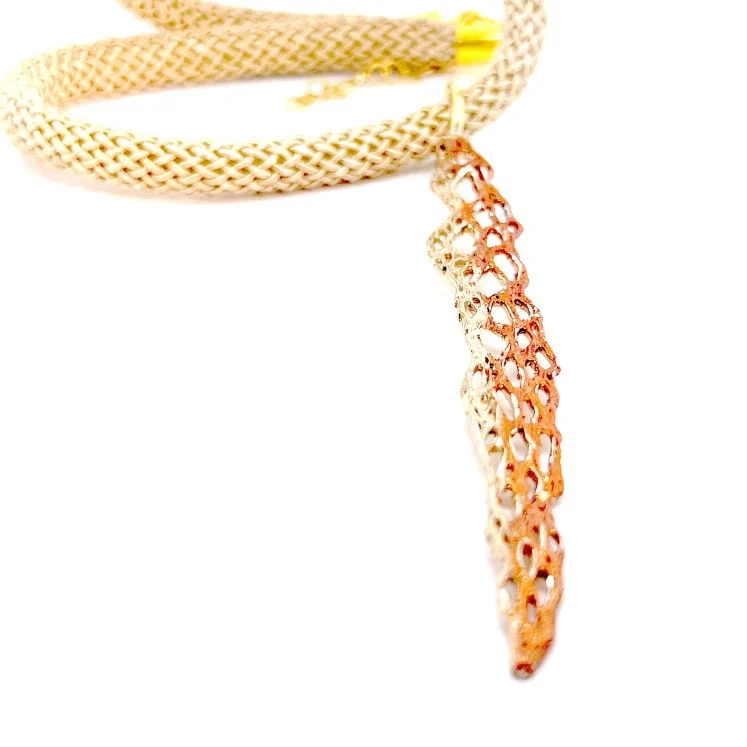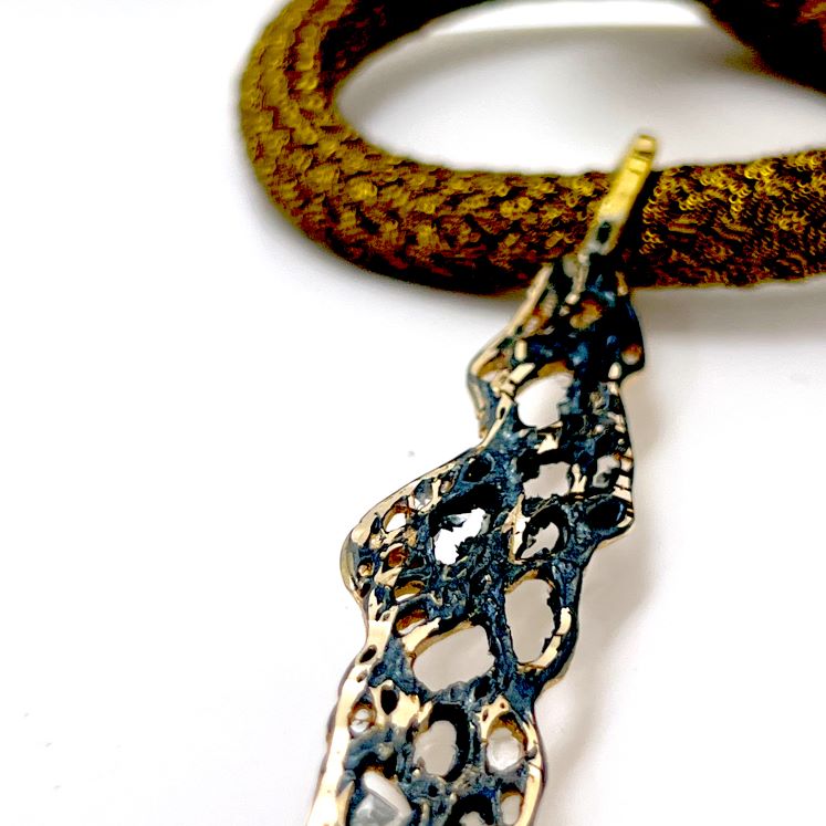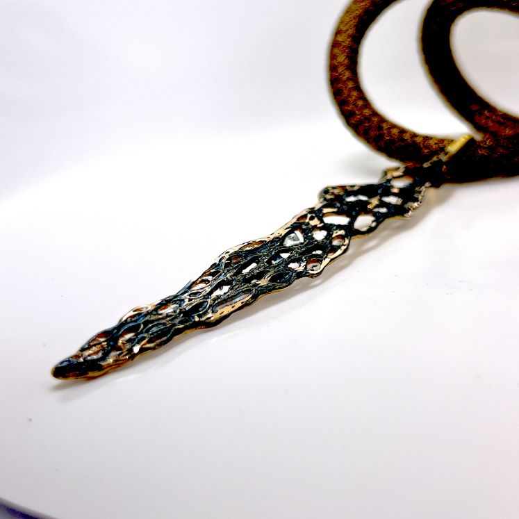 Κολιέ Frontiers K1114 από το εργαστήριο της Tina Kotsoni. Χειροποίητο κολιέ από ορείχαλκο με χρωματιστή πατίνα και δουλεμένο με την τεχνική του διαμανταρίσματος που προσδίδει στο μέταλλο την απόλυτη λάμψη.