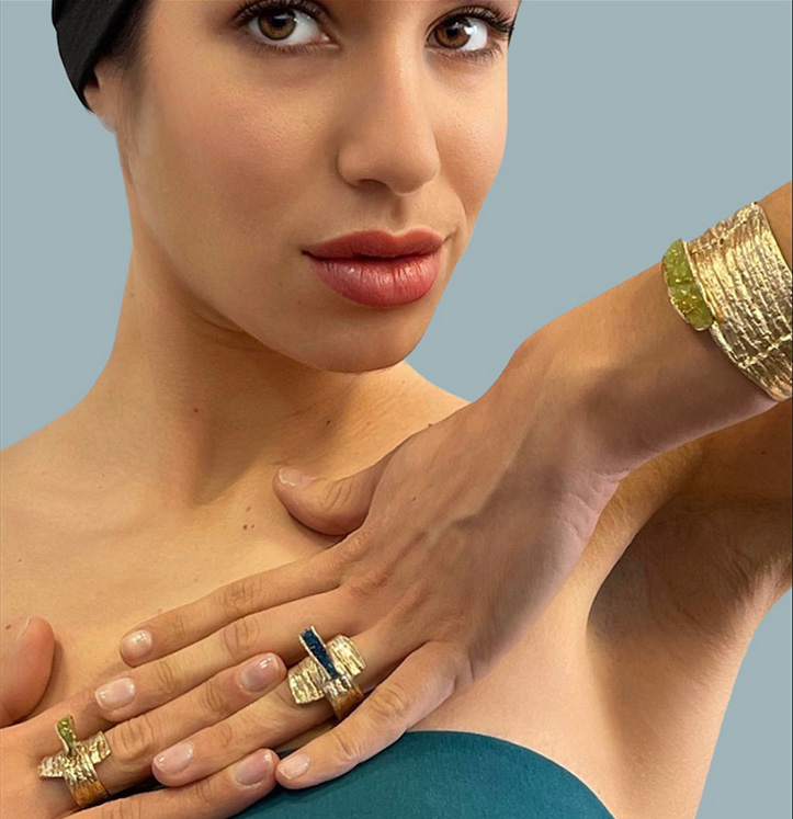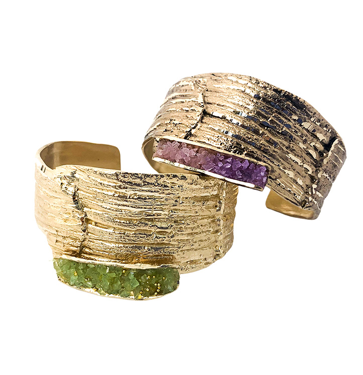 Βραχιόλι Lines B1009 από το εργαστήριο της Tina Kotsoni. Χειροποίητο βραχιόλι από ορείχαλκο με χρωματιστή πατίνα και ακατέργαστους κρύσταλλους. Δουλεμένο με την τεχνική του διαμανταρίσματος που προσδίδει στο μέταλλο την απόλυτη λάμψη.