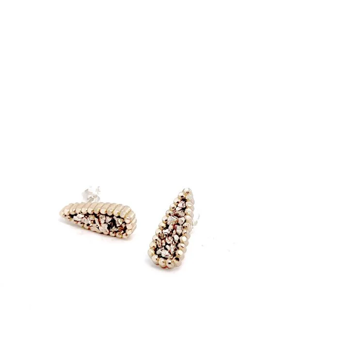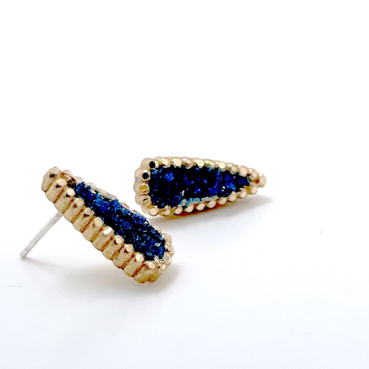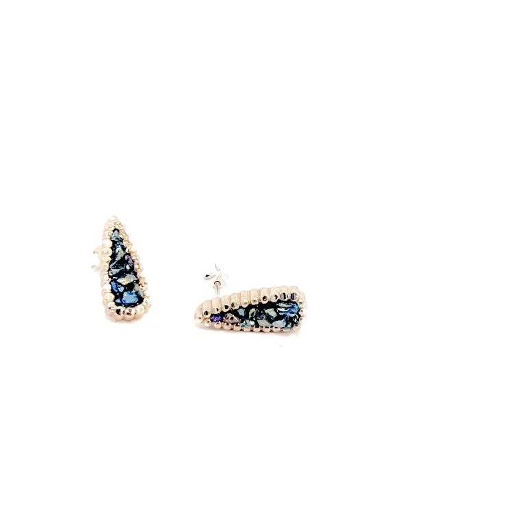 Σκουλαρίκια Reinvention S1112y από το εργαστήριο της Tina Kotsoni. Χειροποίητα σκουλαρίκια από ορείχαλκο με ακατέργαστους κρυστάλλους και ασημένιο καρφάκι 925. Δουλεμένα με την τεχνική του διαμανταρίσματος που προσδίδει στο μέταλλο την απόλυτη λάμψη.
