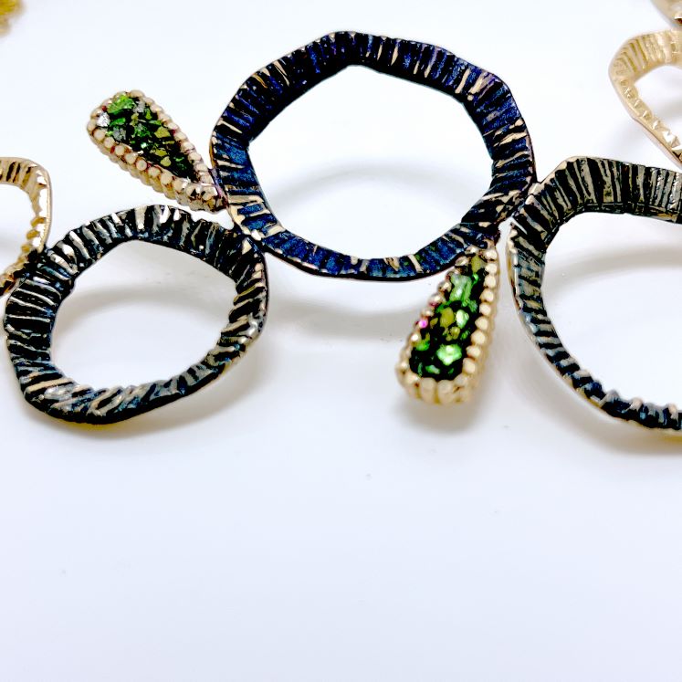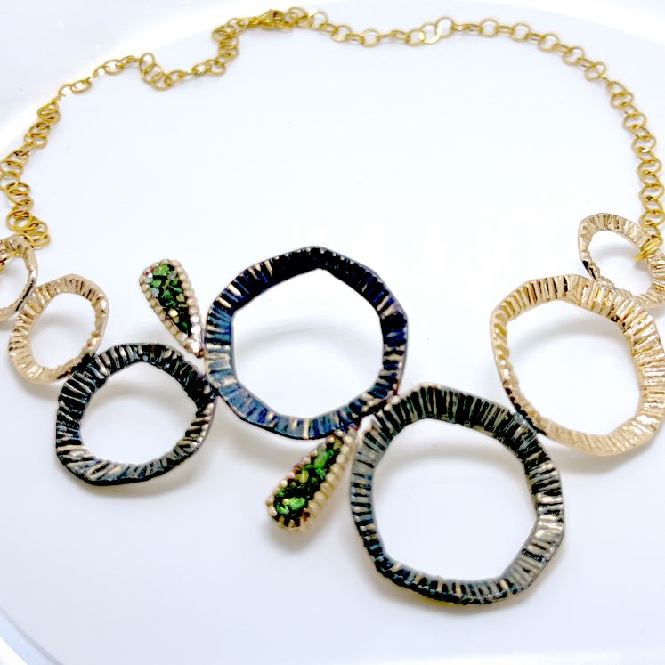 Κολιέ Reinvention K1098 Large από το εργαστήριο της Tina Kotsoni. Χειροποίητο κολιέ από ορείχαλκο με χρωματιστή πατίνα, ακατέργαστους κρυστάλλους και αλυσίδα από stainlees steel. Δουλεμένο με την τεχνική του διαμανταρίσματος που προσδίδει στο μέταλλο την απόλυτη λάμψη.