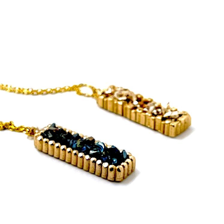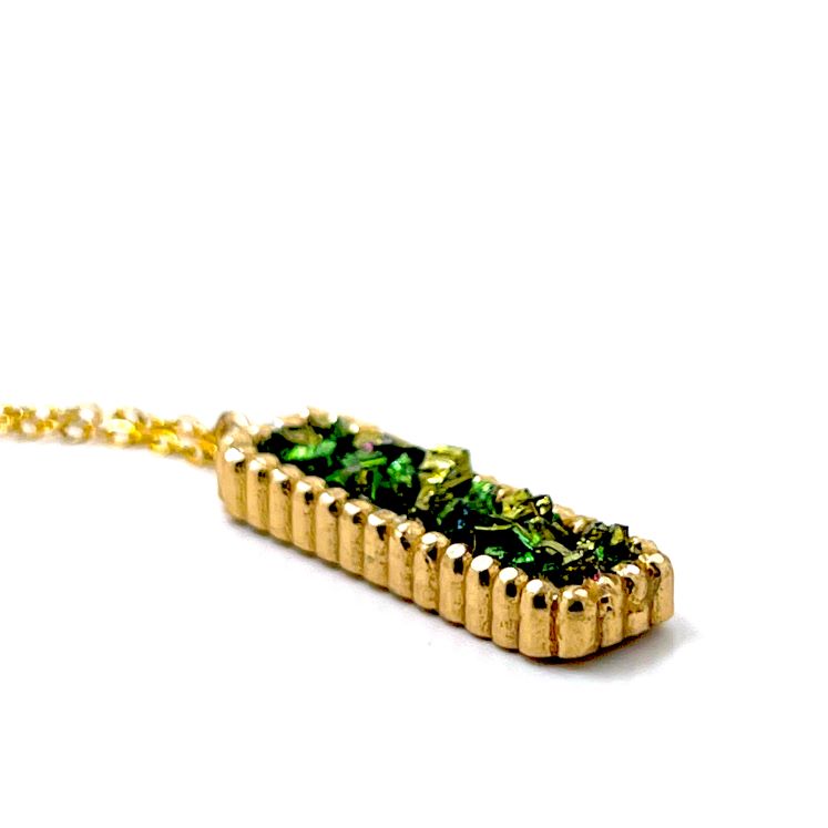 Κολιέ Reinvention K1106 από το εργαστήρι Tina Kotsoni. Χειροποίητο κολιέ από ορείχαλκο με ακατέργαστους κρύσταλλους και αλυσίδα από stainlees steel. Δουλεμένο με την τεχνική του διαμανταρίσματος που προσδίδει στο μέταλλο την απόλυτη λάμψη.