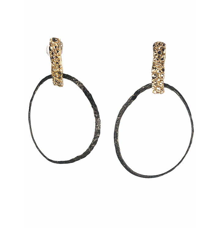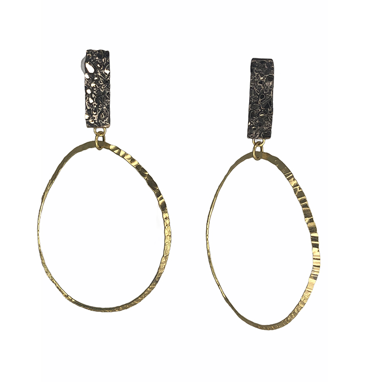 Σκουλαρίκια Underwater S1025 από το εργαστήριο της Tina Kotsoni. Χειροποίητα σκουλαρίκια από ορείχαλκο με χρωματιστή πατίνα και ασημένιο καρφάκι 925. Δουλεμένα με την τεχνική του διαμανταρίσματος που προσδίδει στο μέταλλο την απόλυτη λάμψη.