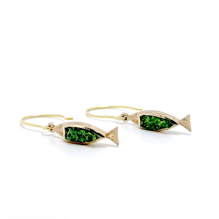 Σκουλαρίκια Underwater S1073b από το εργαστήρι Tina Kotsoni. Χειροποίητα σκουλαρίκια από ορείχαλκο κομμένα με διαμάντι με κρυστάλλους και ασημένιο καρφάκι.